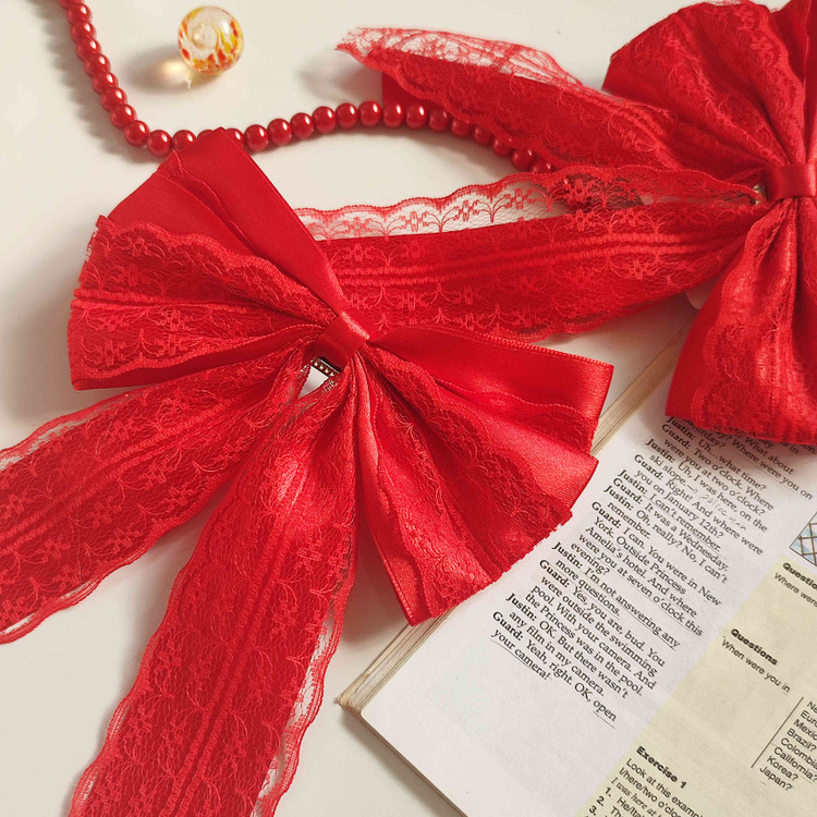 گیره مو دخترانه پاپیون یلدایی از تور و ساتن وارداتی درجه یک