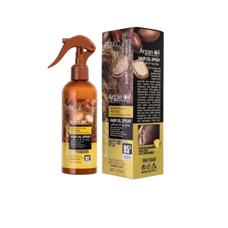 اسپری دو فاز مدل روغن آرگان Argan oil برند RAKO ✔️آبرسان ✔️تقویت کننده ✔️ترمیم کننده ✔️براق کننده ✔️حالت دهنده ✔️نرم کننده ✔️محافظت کننده ✔️حجم ۲۵۰میل ✔️تاریخ انقضا۲۰۲۵