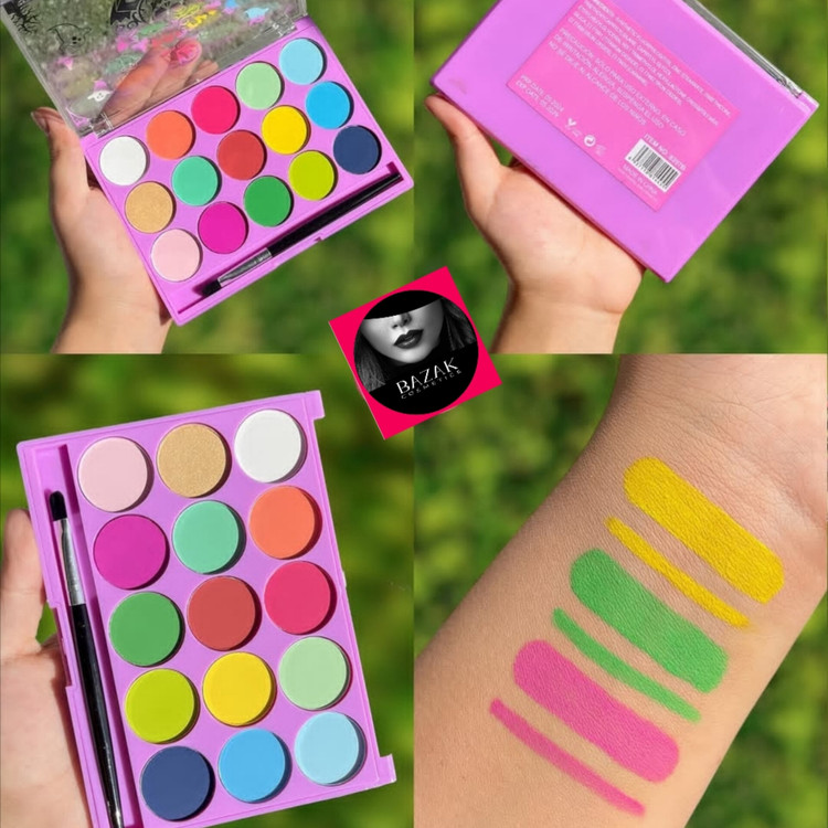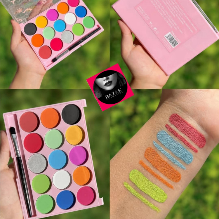 پالت خط چشم آبرنگی ۱۵ رنگ طراحی صورت کودکان و خط چشم برند IMAN OF NOBLE