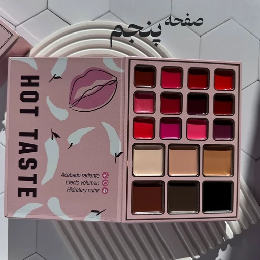 • ۱۸ رنگ رژلب (ژلهای، براق، شایندار و مخملی)