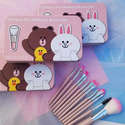 ست براش آرایشی دوازده تکه جعبه فلزی فانتزی میشا