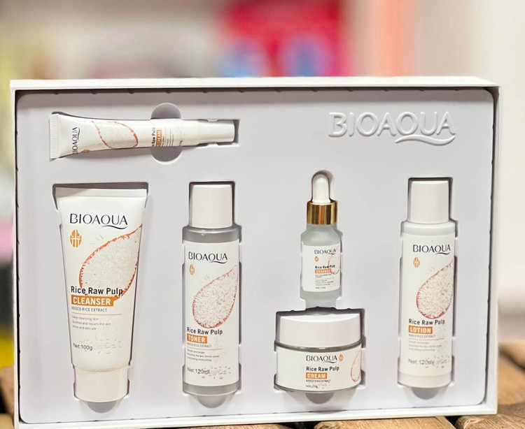 پک مراقبتی پوست برنج از ۶ عدد محصول تشکیل شده است. این محصولات شامل فوم شستشو ۱۰۰ گرم، تونر آبرسان ۱۲۰ میل، لوسیون ۱۲۰ میل، کرم دورچشم ۲۰ گرم، سرم نرم کننده ۱۵ میل و کرم کاسه ای مرطوب کننده ۵۰ گرمی می باشند. محصولات پک مراقبتی برنج بیوآکوا خشکی پوست شما را بهبود می بخشند و یک مرطوب کننده فوق العاده برای پوست شما نیز هستند.