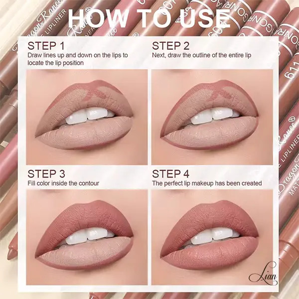 پک خط لب شمعی پیچی دراگون رانی در رنگهای نود هر پک در 12 عدد رنگ بندی جذاب بدون پوسته شدن روی لب پیگمنت و رنگدهی بالا مات روی لب بافت نرم و مخملی مناسب استفاده روزانه کاربردی و ترند و پر فروش ماندگاری بالا پیچی مناسب استفاده شخصی و میکاپ آرتیست ها مناسب هدیه دادن انقضا 2029 اورجینال