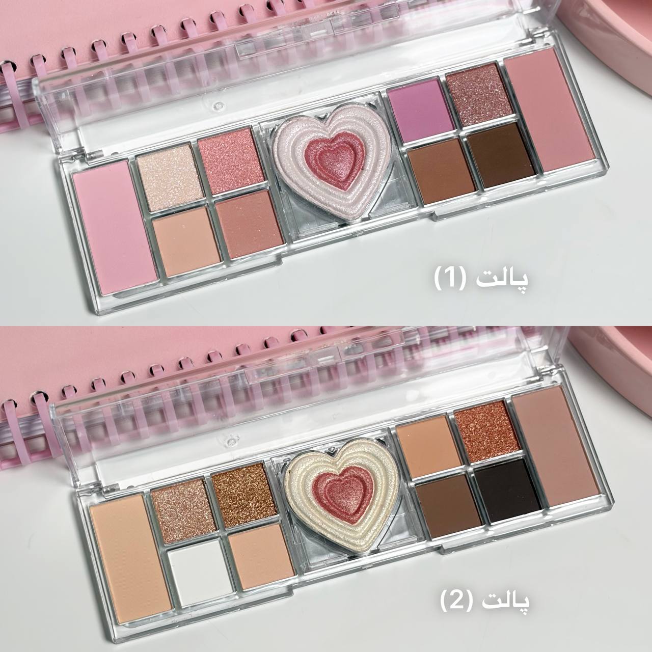 هایلایتر قلبی در مرکز پالت است. این هایلایترها با شاین فوقالعاده جذاب و بافت مخملی، درخشش خیرهکنندهای به استخوان گونه، نوک بینی و گوشه داخلی چشم میدهند و شما را از خرید هایلایتر جداگانه بینیاز میکنند.