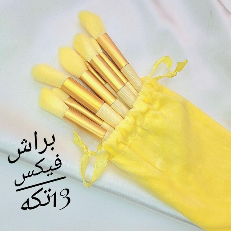 ست براش 13 عددی زرد طرح فیکس با کیف پارچه ای بنددار