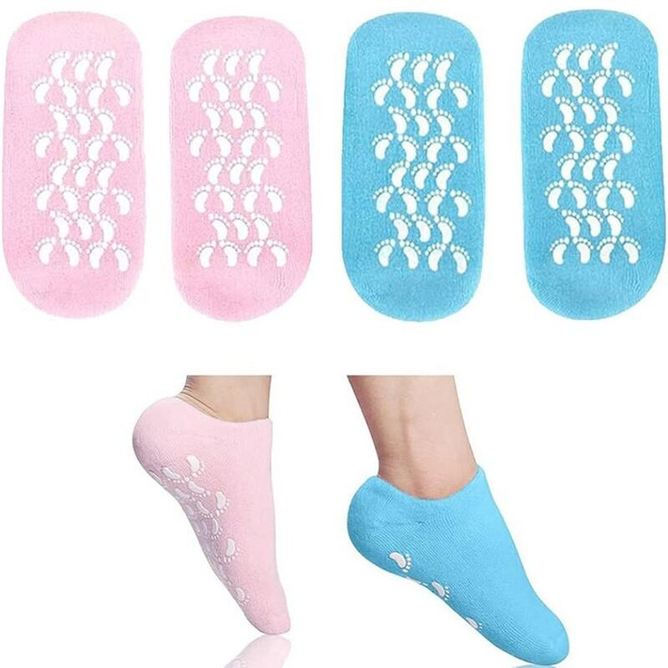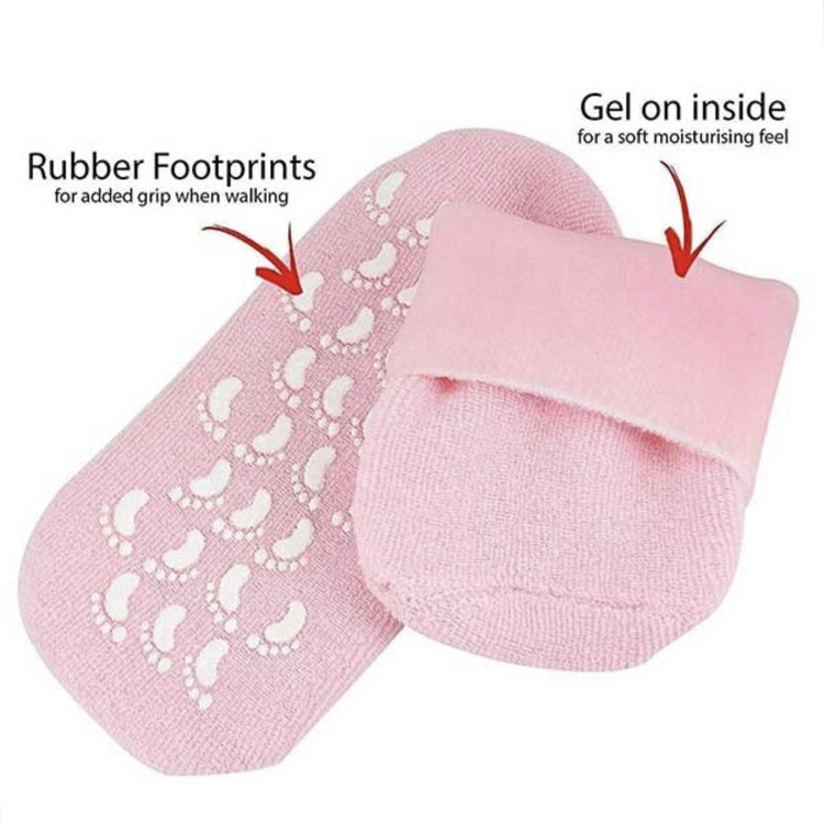 👌جوراب پاپوش طبی مراقبت و ضد ترک پا Spa Gel Socks بهترین جوراب نرم مرطوب کننده برای پوست های سخت، خشک، زبر، ترک خورده، انگشتان و پاشنه پاها می باشد. استفاده از جوراب پاپوش طبی می تواند به عنوان درمان آبگرم در خانه باشد و دیگر نیازی به مراجعه به سالن های زیبایی گران قیمت ندارید. این جوراب پاپوش تهیه شده با روکش ژل فرموله شده ویژه غنی از ویتامین E و روغن های معدنی (روغن جوجوبا، روغن هسته انگور، روغن زیتون و غیره) می باشد.